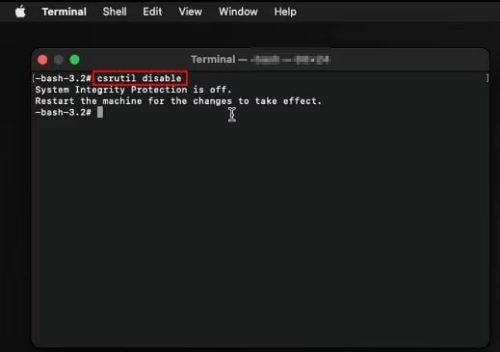 - Enter the command csrutil disable in the terminal and press Enter (Return).